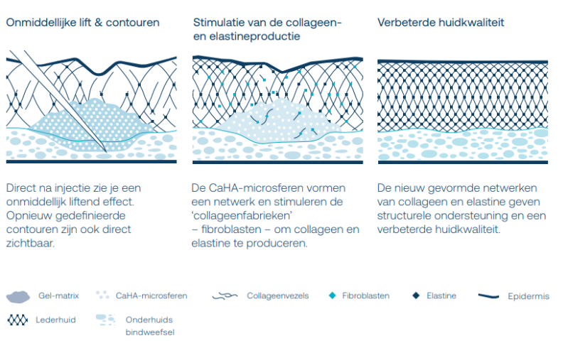 Bestaat uit microsferen van calciumhydroxyapatiet (CaHA) in een zachte gel.